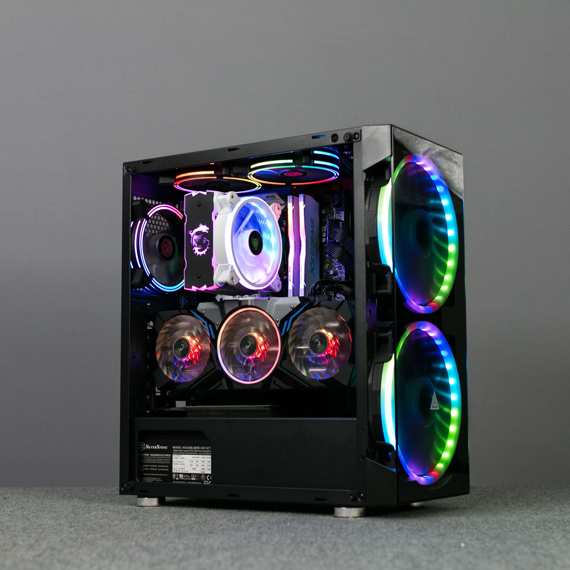 - Cooling/quạt tản nhiệt: 2 quạt 20cm RGB và 1 quạt 12cm RGb cho sẵn, lắp thêm được 2 quạt 12cm RGB trên nóc